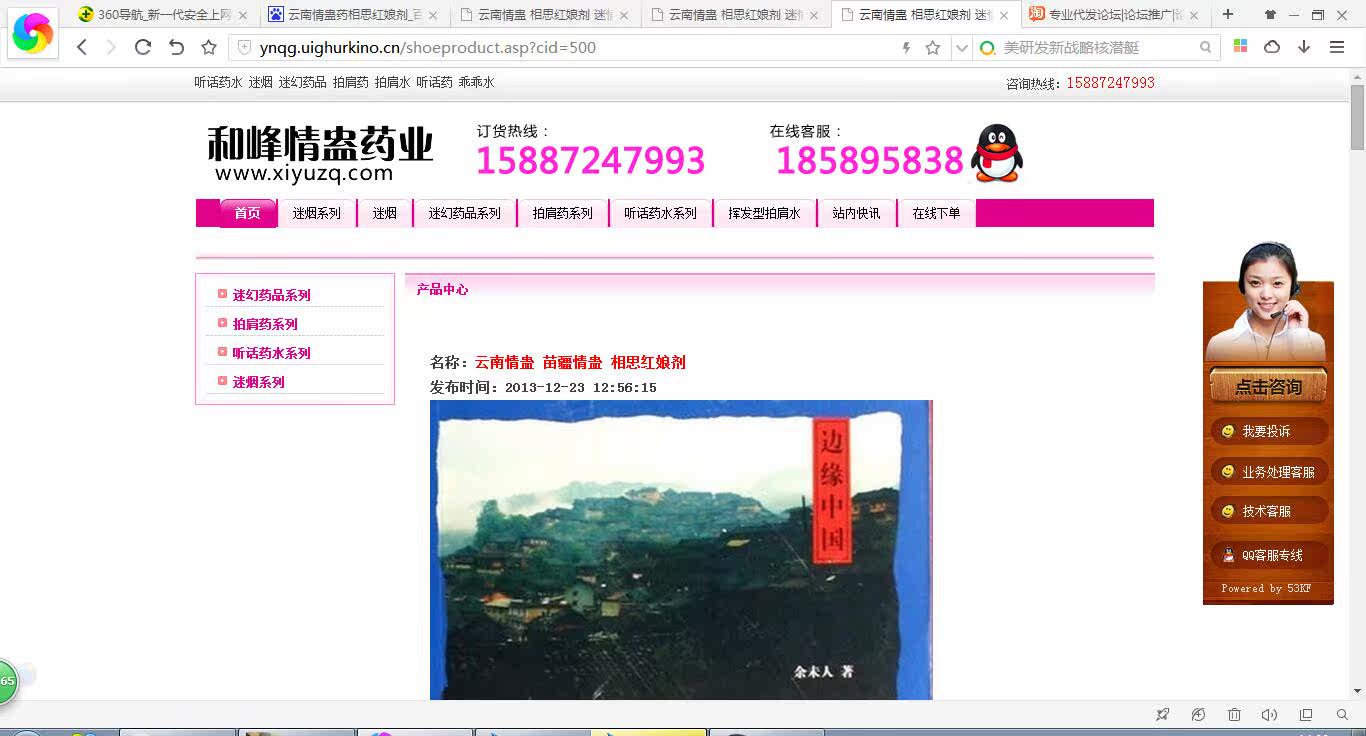 天津的邓华强今年已经五十多岁,,随着年龄大了渐渐感到力不从心,老婆不满意经常吵架闹离婚,老邓苦恼不已,看到云南情蛊药相思红娘剂广告,虽然不太相信,可还是抱着“死马当活马医”的心理买来给妻子使用,很快妻子就变了,对老邓体贴有加并且通情达理再也不闹离婚了。夫妻俩逢人就讲云南情蛊药相思粉的好处,于是很多夫妻不和的人就委托老邓购买,老邓就索性做起了代理,随着越来越多的人互相口传,,,,