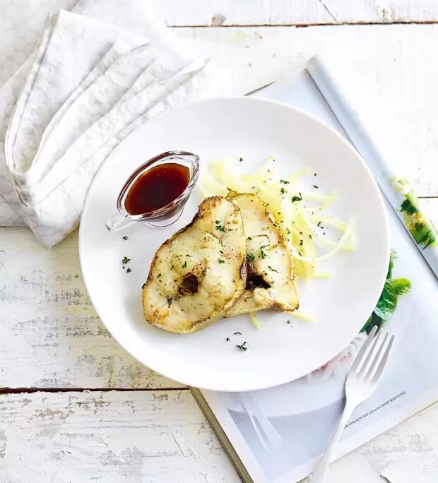 挪威北极鳕鱼排擦净,擦少许盐入味。扒锅烧热,表面刷一层油,放入鳕鱼排煎烤3分钟,翻面再烤1分钟取出装盘。