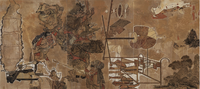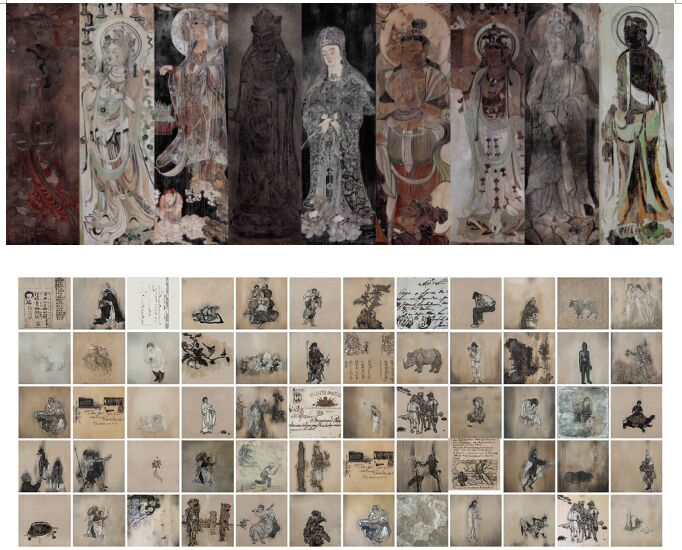 探索与发展不是无根之水,即使是海市蜃楼也有其影射基础。对于绘画艺术的研究,叶剑青从两个方面开始,一个是传统壁画临摹,另一个是他谓之冒险的西方绘画经验,这就是传承发展和破旧立新。叶剑青要的是从这两条路上走过去,走到尽头再发现前面的路,然而结果呢?对敦煌壁画中国“艺术密码”和尼采“日神精神”的学习之后,他的实践作品就是1994年的东西方文化碰撞主题,虽然是一种粗浅尝试,但这种思维方式使他逐渐产生了一种信心。信心来源于中国的前辈艺术家所做的尝试,当徐悲鸿、林凤眠等一批画家经过西方艺术经验洗礼后回国,试图用西方习得的技法来创建一种特殊的艺术表达方法,既有别于西方既有成就、又有别于自身旧有传统,探寻一条“现代中国绘画”之路。虽然他们在有生之年没有看到一个真正成熟的中国文化新物种,但在叶剑青看来,却为中国现代艺术传统的形成提供了最为重要的精神火种和线索。