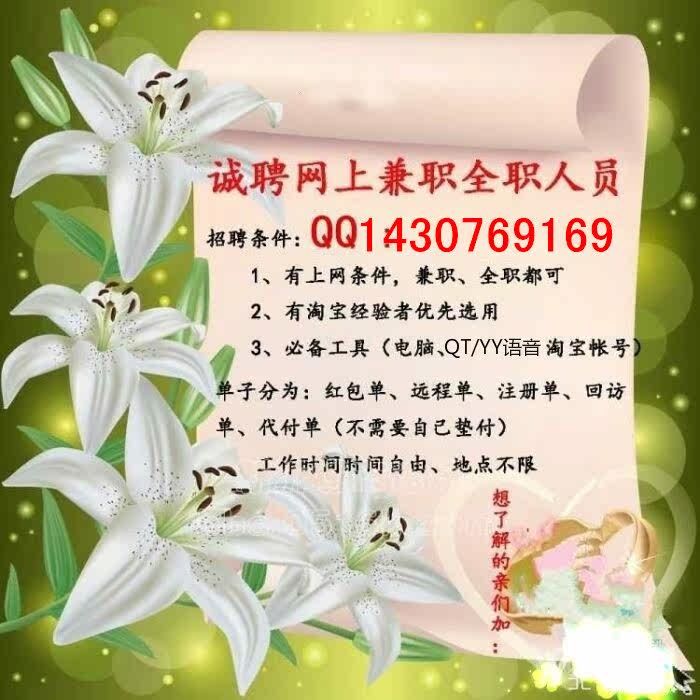 在家网上兼职做什么赚钱?淘宝兼职怎么做是真的吗?解密网络兼职骗局!说到网上兼职,属淘宝刷单兼职最为流行,虽然这个行业有骗子存在,但是就算骗子再多,手法还是换汤不换药的,只要我们学会基本的网络防骗意识,大家在网上寻找兼职工作的时候就一定不会被骗,但是究竟该如何增强自己的防骗呢?做正规兼职加宝妈王婷婷QQ1430769169(手机QQ加第一个,其他都是用我qq号做昵称或者建群的骗子,已经有人被骗了,如提示号满员根据提示添加)认准全职妈妈王婷婷
