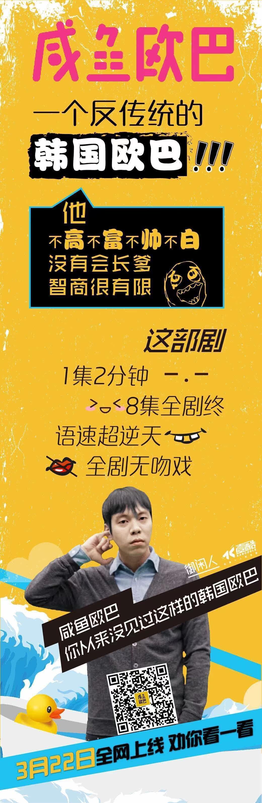 一部《太阳的后裔》俘获了辣么多的少女心,楼主我偏偏不想做跟风狗,便开始到处挖掘好剧,没想到还真的让我遇到了一部自带弹幕的轻时尚网络短剧《咸鱼的后裔》!哦!不是,是《咸鱼欧巴》!!!LZ从此掉进深坑无法自拔!!为啥?因为时间短啊!短到还没进入高潮就结束了!!无奈LZ又悻悻的刷了两遍!!才反应过来《咸鱼欧巴》这部剧虽然短但够刺激啊!